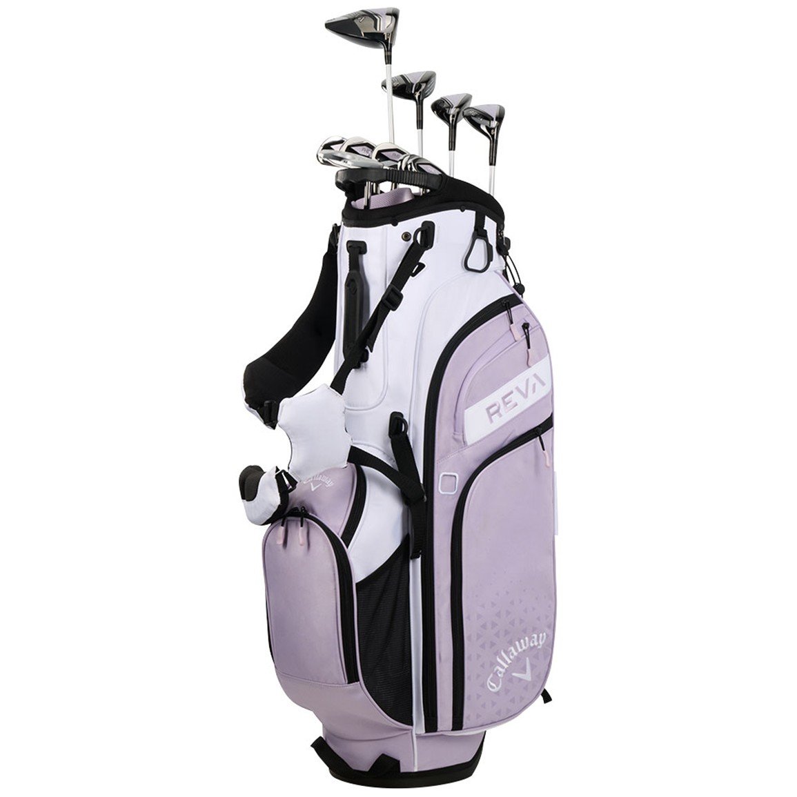 The Callaway Women's REVA 11-Piece Complete Set with Stand Bag delivers the same premium performance as the cart bag version while adding the convenience and portability of a lightweight stand bag for golfers who walk the course. This complete set includes Driver, 3 Wood, 5 and 6 Hybrids, 7 through 9 Irons, Pitching and Sand Wedge, Putter, Stand Bag, and 5 premium headcovers. Engineered for women of all skill levels who want to increase their distance, hit great shots, and enjoy the game more than ever before, this set combines innovative composite crown technology with women-specific design for confidence-inspiring performance.