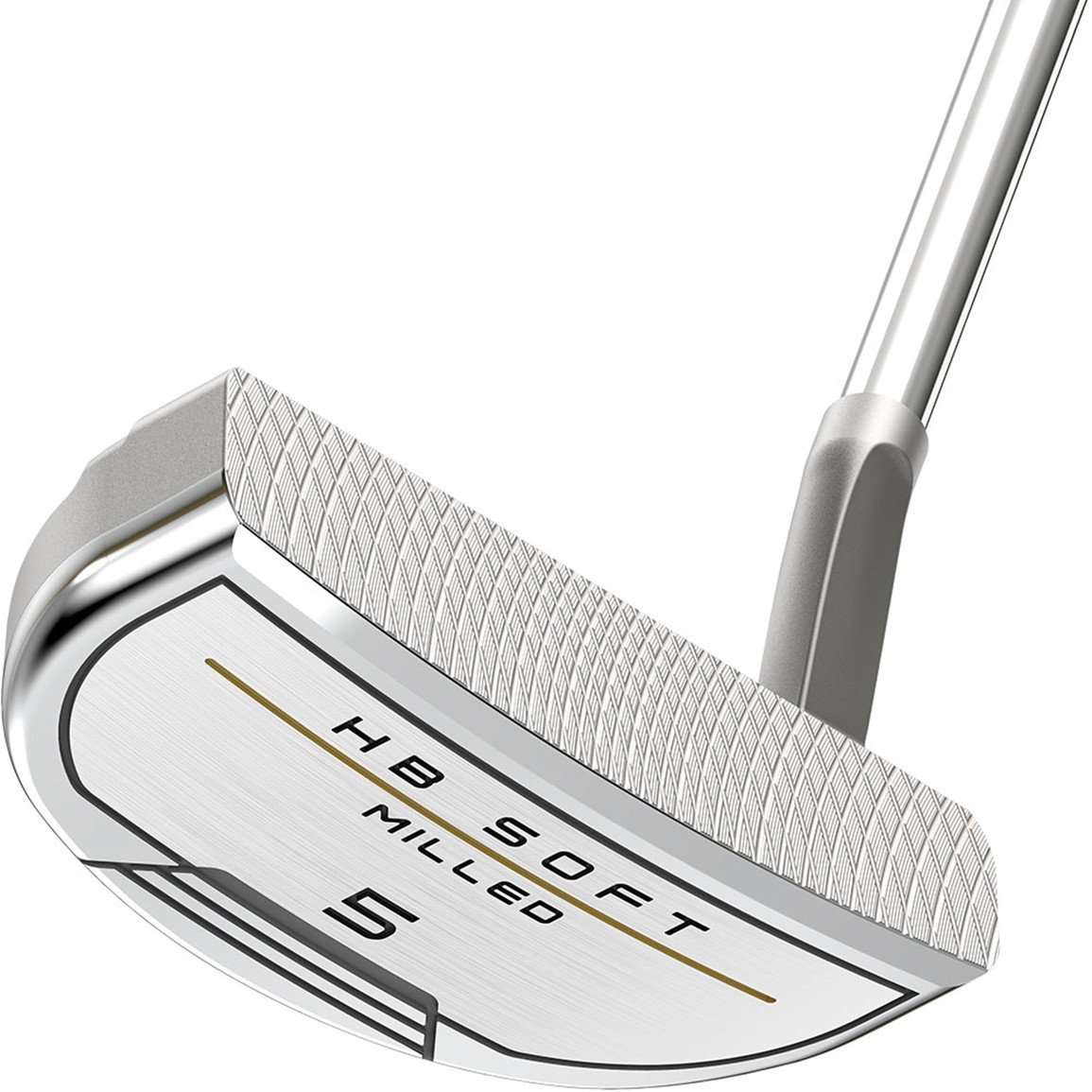The Cleveland HB Soft Milled #5 is a compact mallet with consistent speed and distance control featuring moderate toe hang for golfers with a slight arc to their putting stroke.