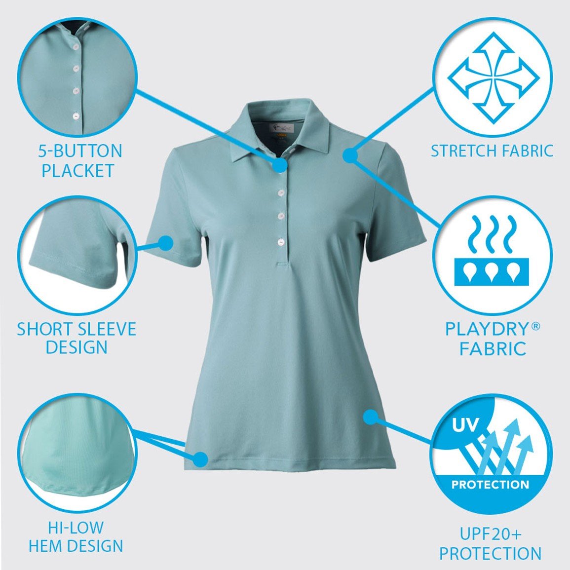 Lightweight 4-way stretch fabric maintains a full range of motion so it doesn't hold back your golf swing.