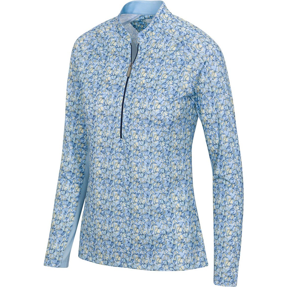 • 1/2-zip placket with boomerang collar for adjustable comfort