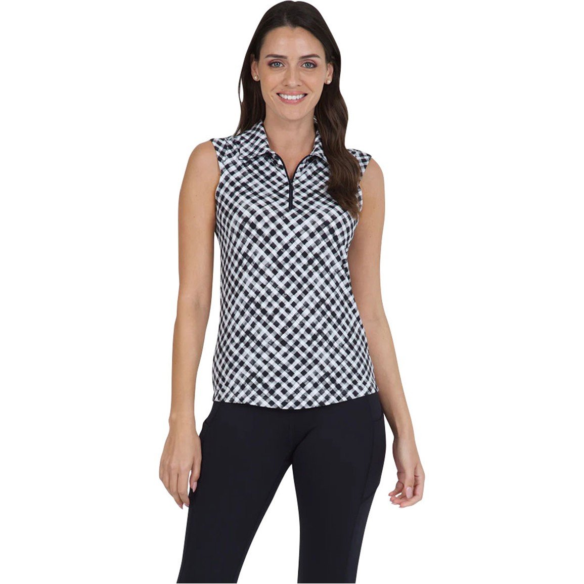 IBkul Women's Gingham Check Sleeveless Golf Polo