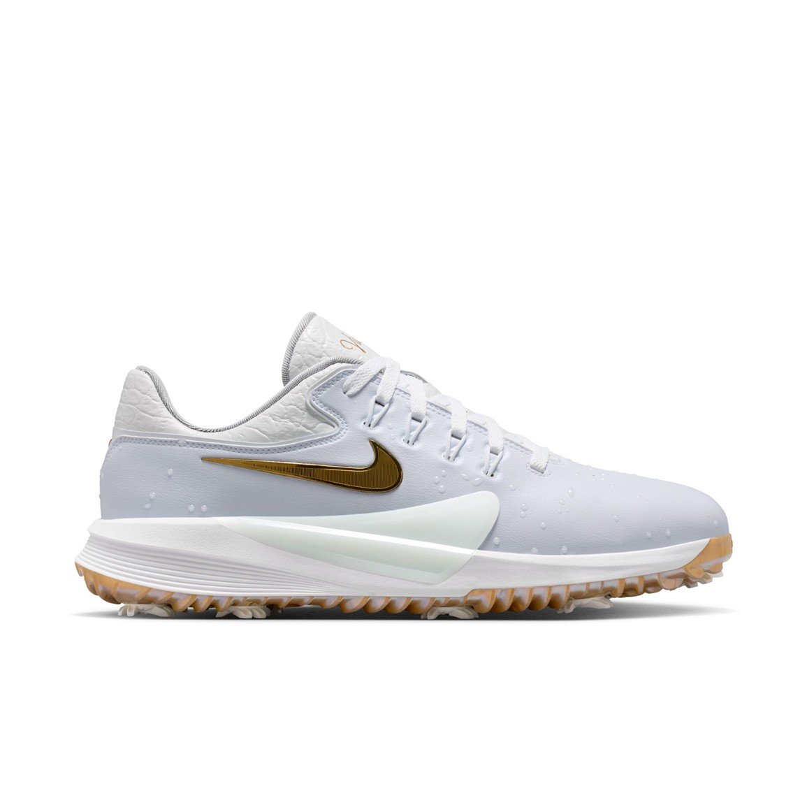 Alligators are just one of the hazards of the iconic par three that inspired this special Victory Pro 4 NRG. Details include trophy-worthy gold accents, double-take 3-D water droplets and a gator-esque material on the collar. Using insights from greats who go all-out, NIKE created an all-new Fly Wing, which helps you push off in your downswing for optimal speed and stability through your finish.