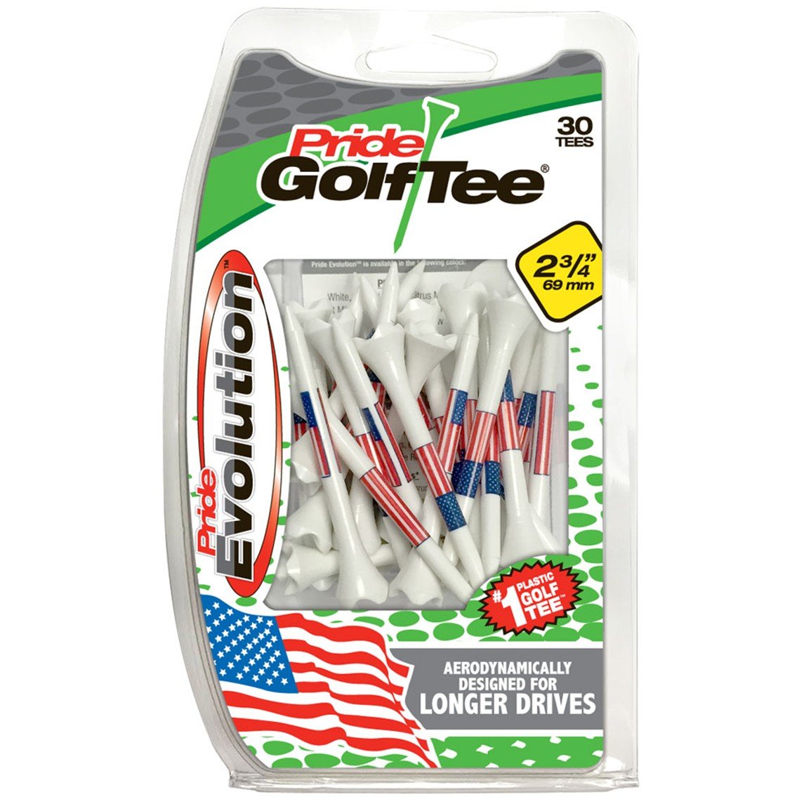 The new Pride PTS Evolution golf tees are available in different lengths to match the club you're using from the tee box. Plastic construction with low-resistance tips create less friction between the ball and tee which gives you extra distance.