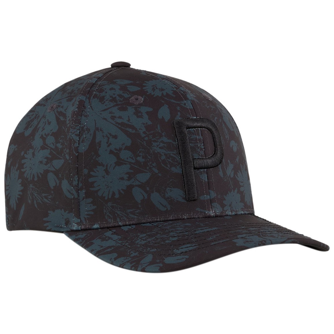 • Embroidered "P" logo and unique rose print