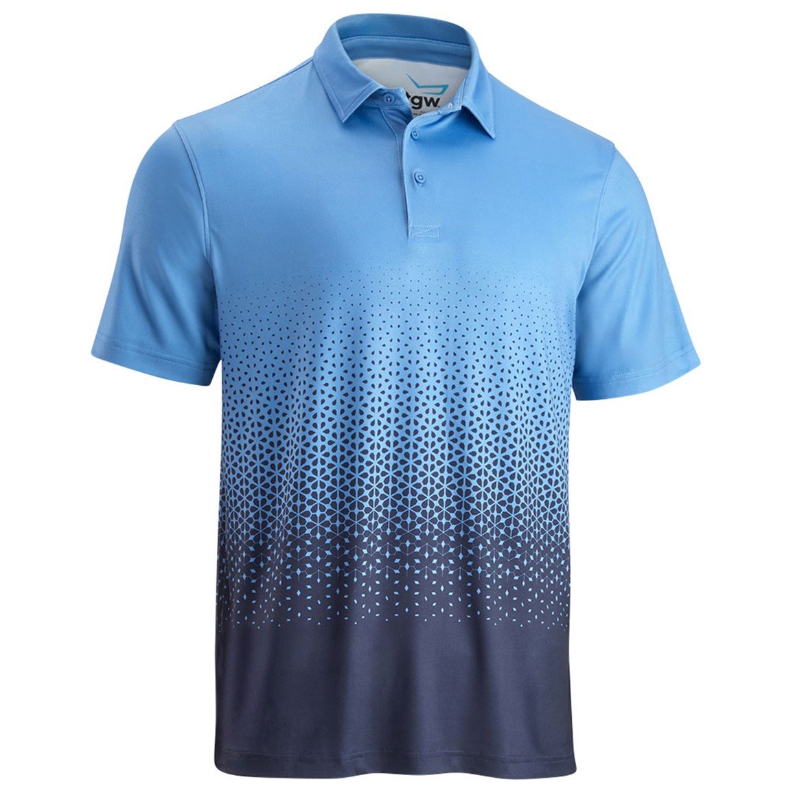 The TGW Men's Ombre Print Golf Polo features interlock fabric with stylish ombre print that provides soft fit, feel, and stretch for a full range of motion. Constructed from 100% polyester interlock fabric, this short sleeve design with regular fit and straight silhouette delivers contemporary styling that stands out on the course. Moisture-wicking fabric dries sweat quickly to keep you dry and comfortable on the course, while the 3-button placket with self-fabric collar provides adjustable comfort.