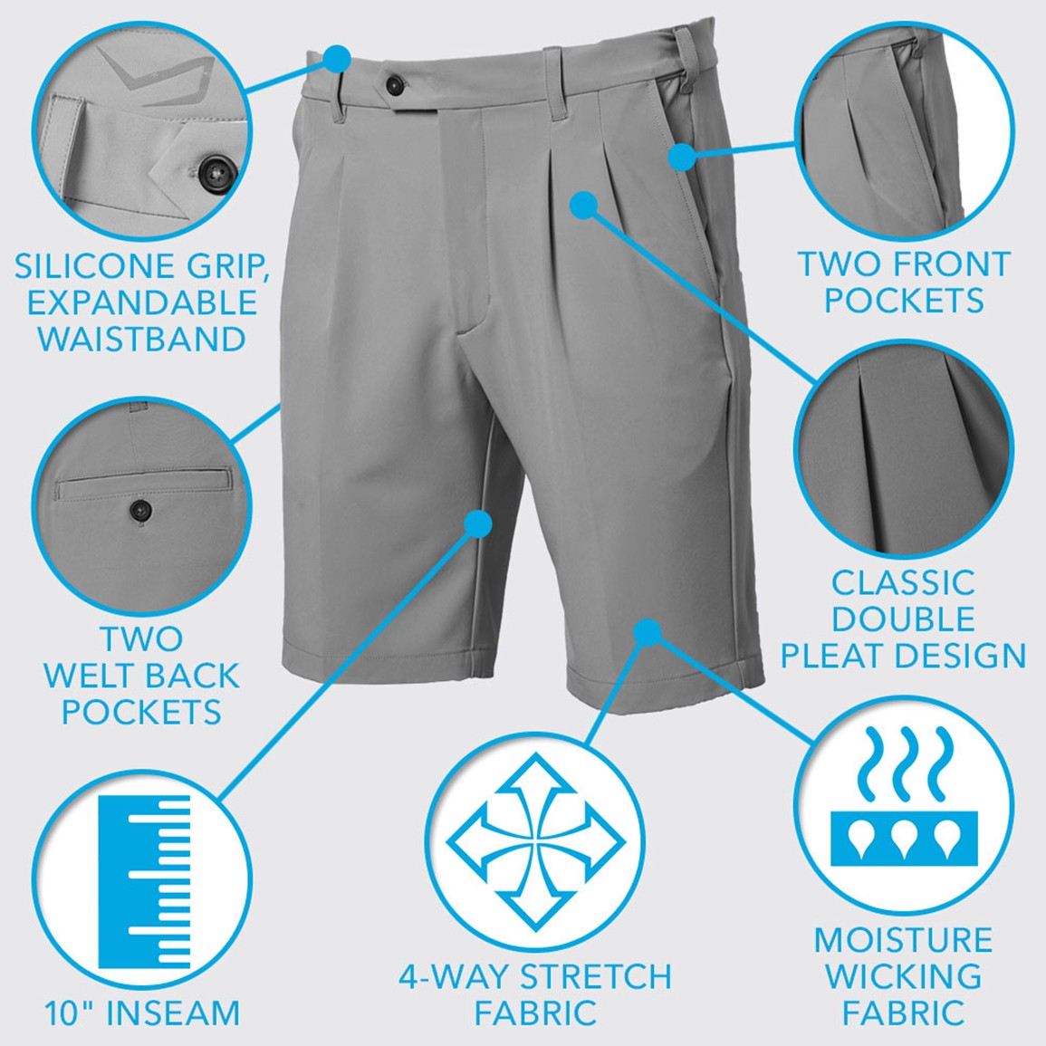 The double pleat design on the front provides a classic look for on and off the golf course.